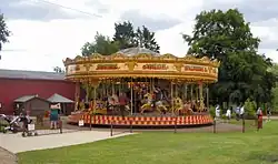 The three-abreast Gallopers, purchased by Alan Bloom in 1967, are the centrepiece of the site. They were built by Frederick Savage in Kings Lynn in 1897 and were owned and operated by the Thurston family of Norfolk until 1934. The Gallopers later operated at Whitley Bay and later in Scotland before finding a home at Bressingham. They are currently powered by electricity, but were previously steam-powered. The engine used, "Victoria", was originally built by Tidmans of Norwich. The organ – a Bruder-built, 48 keyless Chiappa – which was built from two organs in 1954, accompanies the Gallopers.