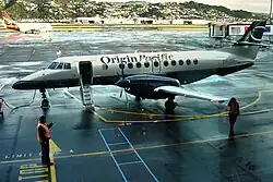 The J41 flew for the first time on 25 September 1991 and was certified on 23 November 1992 in Europe, and 9 April 1993 in the United States, with the first delivery, to Manx Airlines on 25 November 1992.[2] In January 1996, the J41 became part of the Aero International (Regional) (AI(R)), a marketing consortium consisting of ATR, Aérospatiale (of France), Alenia (of Italy), and British Aerospace. Sales initially were fairly strong, but in May 1997 BAe announced that it was terminating J41 production,[3] with 100 aircraft delivered.