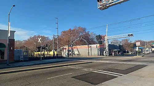 Broadway is a side platformed Sacramento RT light rail station in Sacramento, California, United States, served by the Blue Line. The station was opened on September 26, 2003, and is operated by the Sacramento Regional Transit District. It is located south of Broadway near Freeport Boulevard, and was the initial station of the Phase 1 south side extension.[1] In addition, it is the southernmost station in the Central City service area (the former fare zone).