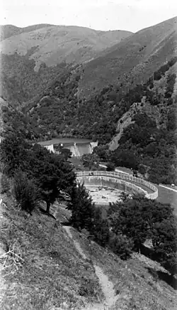 The Brook Valley immediately south of Nelson is a water-supply reserve owned for over 100 years by the Nelson City Council. The Nelson Waterworks Reserve was created in 1865, encompassing the watershed of the Brook Stream. A dam was built and an oval reservoir were constructed that held a two-week water supply for the city; they opened on 16 April 1868.[1] A second dam was built in 1905, and a third in 1909, to create enough water pressure to supply houses in the hills around Nelson. The dams were plagued with leaks, and the city's water needs continued to grow. A dam and pipeline were built on the Roding River in 1941, and the Maitai River was dammed in 1987.[2] Together these rendered the Brook waterworks obsolete, and it was decommissioned in 2000.[1]