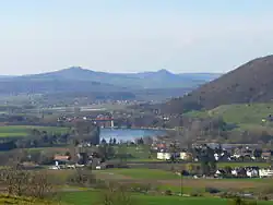 The Rhine river and Hemishofen (with Ramsen and Buch in the background) below the town of Stein.