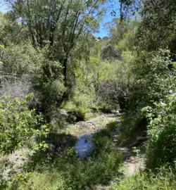 Riparian vegetation along the creek includes arroyo willow, white alder and Fremont cottonwood.