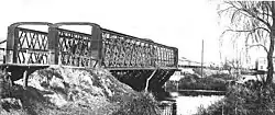 The first bridge built by the BAGSR over the Riachuelo lasted 44 years, so in 1909 it was replaced by a moveable bridge that operated until 1982, when the line was electrified and a new bridge (built in concrete) replaced the old iron structure.[3]