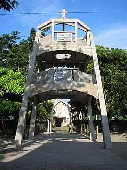 Near the community of Dapdap, a bigger triangular muralla [fortification] called Punta Diamante which encloses the church and rectory of the parish of St. James the Greater was erected. Punta Diamante has five watchtowers with high, thick walls, making it an ideal place for refuge during Moro attacks. Unlike the other watchtowers which are cylindrical and have circular bases, the one facing the sea is of a triangular plan, a smaller version of the main complex. The biggest watchtower has an octagon shaped base (with eight sides) and tapers upward in alternating tiers. This watchtower now serves as the church's bell tower, with the old bells comparably intact.[10]