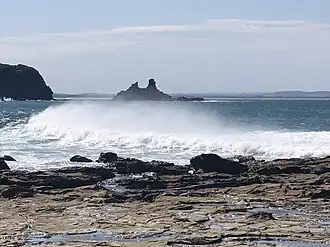 The principal features of the park are the striking rock formations including the large rock structure called Eagles Nest, located adjacent to the coastline at the eastern end of the marine national park. Eagles Nest also resembles the top half of a map of Australia.[5][6] Other attractions include Flat Rocks where there are large rockpools for rockpool rambling and direct access from Cape Paterson-Inverloch Road. The Bunurong Marine National Park is accessed at many different points along this coast, a popular one being near Cape Paterson caravan park on Surf Beach Road as it has a modified rockpool for swimming.[7] Direct and more difficult access to the marine national park is via car parks off Cape Paterson-Inverloch Road. Exploring, snorkelling[8] and scuba diving are popular. There are boat launching facilities at Inverloch on Anderson Inlet.[2]