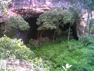 Buraco das Araras - Dolina dos Maracanas (BR-020) (English: Hole of the Macaws) is one of the largest quartzitic caves located in the State of Goiás, Brazil. It is located about 120 kilometres (75 mi) west of Brasília and 16 kilometres (9.9 mi) from the district of Bezerra, in the municipality of Formosa. It is considered one of the largest sinkholes (dolinas) in the world.