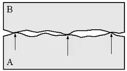 Upon magnification, two flat plates touch only at a few asperities.