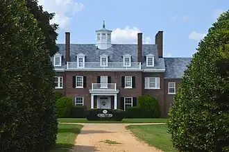 In 1916, prominent Chicagoan Mark Skinner Willing, heir to the Marshall Field retailing fortune, hired architect Waddy Butler Wood, who renovated and enlarged the dwelling in the Colonial Revival style, expanding an existing dwelling on both sides, with side gable roofs. A portico and lantern reflect the property's association with the family of George Washington.[1] Waddy Butler Wood's father was from Virginia, and although the architect was born in St. Louis, Missouri, he was raised in Gloucester County, Virginia and educated at Virginia Tech.[11] In the early 20th century, Wood became a prominent architect in the national capital area, for both government and private buildings. He preferred the Colonial Revival style and had earlier renovated the interior of another former Washington family house, Woodlawn.[12]