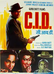 C.I.D. is a 1956 Indian crime thriller film directed by Raj Khosla and produced by Guru Dutt. It stars Dev Anand, Shakila, Johnny Walker, K. N. Singh and Waheeda Rehman. The film has Dev Anand playing a police inspector investigating a murder case. The music was given by O. P. Nayyar and the lyrics by Majrooh Sultanpuri and Jan Nisar Akhtar. It was Waheeda Rehman's screen debut in Hindi films, and future directors Pramod Chakravorty and Bhappi Sonie worked as assistant directors on this film.[1][2] It is considered to be one of the "Best Thrillers to have ever come out of Hindi Cinema".[3]