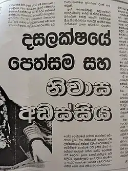 Dasalaksha Pethsama . Dinamina Article