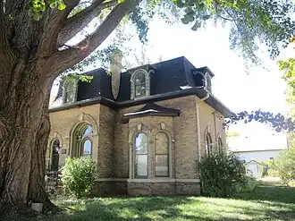 The house was built in 1878 for Chauncey D. Hulburt, a prominent lumberman who moved to Green County from Onondaga County, New York in 1847. His father, Julius Hulburt, was a member of the Wisconsin State Assembly. The one-and-a-half story house is the only Second Empire house standing in Green County. Hulburt traveled around the world by ship in 1865, and his travels may have inspired his choice of a locally uncommon style. The house's design includes an arched entrance and front window, a three-sided bay window on the front facade, and a mansard roof with ornate wooden dormers. The interior of the house includes carved walnut and maple fixtures and hardwood flooring, befitting Hulburt's occupation.[2]