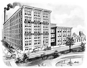 The C. F. Streit Mfg. Co. was a furniture maker located on Kenner St. in Cincinnati, Ohio. Streit manufactured a number of adjustable furniture pieces, most notably the Slumber Chair which had a combination upholstered seat and back element which could be inclined at various angles. Streit also manufactured a Slumber Davenport with a fold down back which converted to a bed. The Streit Shakespeare Chair was a shallow theater chair with a flip-up upholstered seat.
