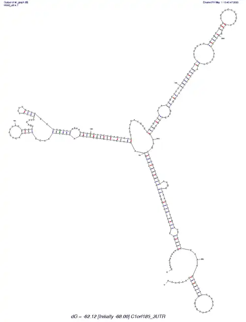 Below is a figure produced by mfold[20] showing predicted mRNA structure of the 3' UTR of C1orf185.