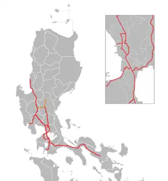 ![]() A map of expressways in Luzon, with CLLEX in orange | |