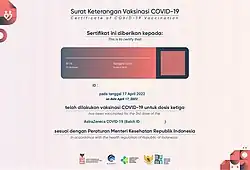 - ^ Irawan Sapto Adhi (16 May 2022). Irawan Sapto Adhi (ed.). "Sertifikat Vaksin Covid-19 PeduliLindungi Diakui di Semua Negara ASEAN". Kompas.com (in Indonesian). Archived from the original on 17 May 2022. Retrieved 17 May 2022.