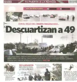 - ^ "Encuentran 49 cuerpos mutilados en Cadereyta". Milenio (in Spanish). 14 May 2012. Archived from the original on 8 September 2012. Retrieved 14 May 2012.