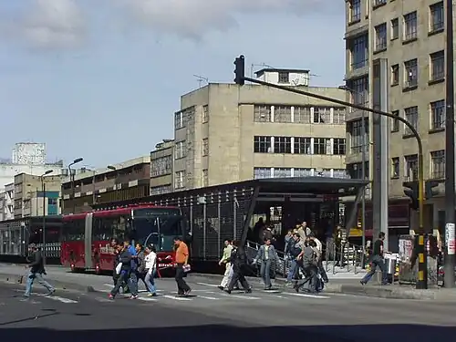 The station is located in the heart of the city, specifically Avenida Caracas between Calles 17 and 19.