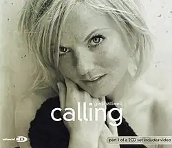 "Calling" is a song by British singer Geri Halliwell. It was written by Halliwell and Peter-John Vettese for her second album, Scream If You Wanna Go Faster (2001), while production was helmed by Stephen Lipson. The song was released as the third and final single from the album. Just like Halliwell's previous single, "Scream If You Wanna Go Faster", the success for "Calling" was limited. In certain regions, the song was released in a French version titled "Calling (Au nom de l'amour)".