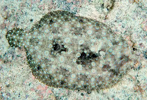 The peacock flounder can change its pattern and colours to match its environment.