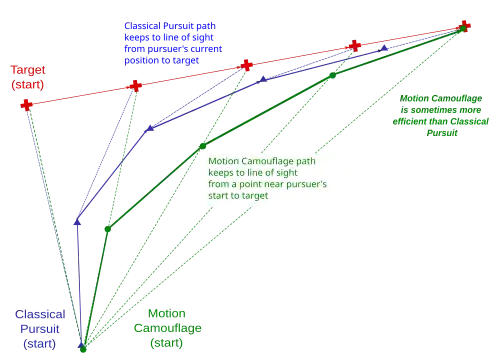 Comparison of motion camouflage and classical pursuit