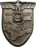 Campaign shields (German: Ärmelschild, lit. 'Sleeve shield'), also known as campaign arm shields, were badges of differing design awarded to members of the German Wehrmacht for participation in specific battles or campaigns during World War II. Each shield was worn on the left upper arm of the uniform jacket. If a recipient received more than one shield, the earlier was worn above any later awards.[1]