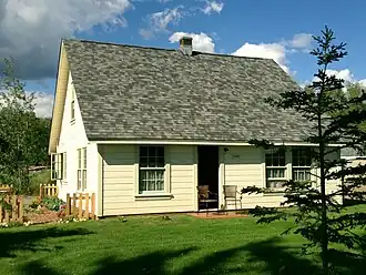 The Campbell House, also known as Colony House #54 and Campbell-Bouwens-Hamming House, is a historic house at 1540 Inner Springer Loop Road, near Palmer, Alaska. It is a simple 1+1⁄2-story wood-frame structure with a side gable roof. It was designed by architect and community planner David Williams, and built in 1935 as part of the Matanuska Valley Colony project. Of the 75 frame houses built as part of the colony, the Campbell House is one of the few that has survived, and is among the best-preserved.[2] The Campbell House property also retains the original, now restored outhouse, and the chicken coop. At present time the Campbell House is the only colony home available to the public as a vacation rental.
