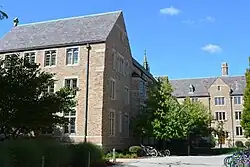 Carole Sandner Hall was named after Carole Sandner, mother of seven foster children, from Lake Bluff, Illinois, after being donated as a gift from her husband. It replaces the previous convent of the Sisters of the Holy Cross.[25] The building cost $11.5 million, and houses the Alliance for Catholic Education, a two-year service program that prepares college students to teach in under-resourced Catholic K-12 schools.[26] The program was founded in 1993 by Fathers Timothy Scully and Sean McGraw and serves dioceses in need all over the country by providing education to lower income families.[27] The building is environmentally friendly and was awarded the LEED Gold certification.[28] It encloses a cloister garden that recalls the former convent of the Holy Cross novitiate.[29]