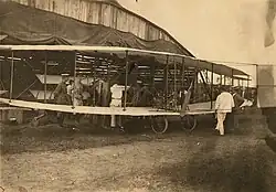 The first flight of the Baddeck No. 1 successfully took place at Petawawa on 11 August 1909. A distance of 100 metres was achieved but engine problems resulted in curtailing further flights that day. On the next day, the second flight was short in duration and ended in a rough landing that damaged a wing and the landing gear. Military officials were not impressed and the Baddeck No. 1 was shipped back to Baddeck.[2] After being repaired, and with new coil springs on the undercarriage, the installation of "between-the-wings" ailerons, an added biplane tail and the cambered front elevators replaced by flat ones, the aircraft continued to fly in a series of proving flights at Bentick Farm in Baddeck.[4] After the loss of the AEA Silver Dart and the major damage to the Baddeck No. 1, Baddeck No. 2, essentially a copy of the earlier aircraft, was assembled in Baddeck.[5]