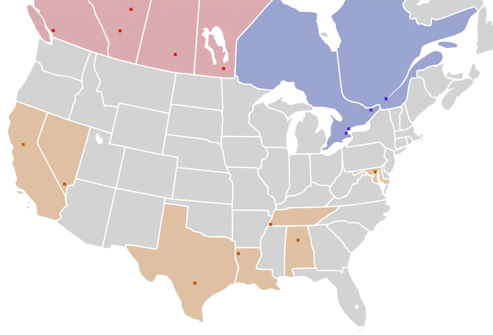 The first American team, the Sacramento Gold Miners, joined in 1993. The league added three more American teams in 1994, after which two more teams joined, one relocated, and one folded to bring the total to five in 1995. In 1995, the teams were aligned into a new South Division. The three years saw numerous ownership debacles on both sides of the U.S.–Canada border. The Baltimore Stallions became the only American-based team to win the Grey Cup championship, in 1995.