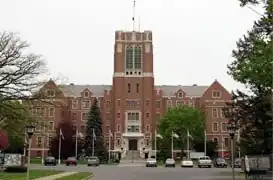 Canandaigua Veterans Hospital Historic District is a historic hospital and national historic district located at Canandaigua in Ontario County, New York. The district includes 29 contributing buildings, two contributing sites, and four contributing structures. They were built or utilized during the period 1931 to 1950. The Veterans Administration opened the facility in 1933, as a veteran's neuropsychiatric hospital. The original hospital buildings built in 1932, include the main building, kitchen / dining hall, acute building, continued treatment building, recreation building, laundry, warehouse, boiler plant, attendant's quarters, sewage pump house, garage, and gatehouse. The buildings are constructed of brick and feature crenellation, gabled parapets, half-timbering, steeply gabled roofs, and Tudor arches reflective of the Tudor Revival and Jacobethan Revival styles.[2]