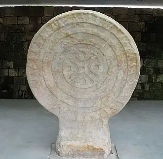Cantabrian stele of Barros, Cantabria from around the 2nd century BC. Carved in sandstone and over a pier base, its dimensions are 1.70 m in diameter and 0.32 m thick.