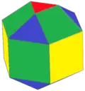 In geometry, a cantellation is a 2nd-order truncation in any dimension that bevels a regular polytope at its edges and at its vertices, creating a new facet in place of each edge and of each vertex. Cantellation also applies to regular tilings and honeycombs. Cantellating a polyhedron is also rectifying its rectification.