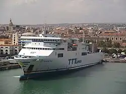 The Grimaldi ferry "Venezia" in the port of Brindisi, October 2020