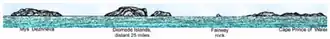 Cape Dezhnyov or Cape Dezhnev (Russian: мыс Дежнёва; Eskimo–Aleut: Tugnehalha; Inupiaq: Nuuġaq),[1] formerly known as East Cape or Cape Vostochny, is a cape that forms the easternmost mainland point of Asia. It is located on the Chukchi Peninsula in the very sparsely populated Chukotka Autonomous Okrug of Russia. This cape is located between the Chukchi Sea and the Bering Strait, 82 kilometres (51 mi) across from Cape Prince of Wales in Alaska; the Bering Strait is delimited by the two capes. The Diomede Islands and Fairway Rock are located in the midst of the strait.[2]