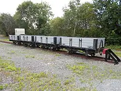 A row of open trucks in a siding at Capel Bangor railway station