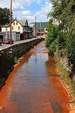 The entire length of Carbon Run is designated as an impaired waterbody. The cause of the impairment is metals other than mercury and the source of the impairment is abandoned mine drainage.[3] Its two unnamed tributaries are also impaired.[4] The stream is impacted by acid mine drainage and the Sterling Mine discharge is in its watershed.[5] The acid mine drainage causes it to have an orange color.[6]