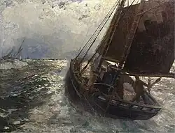 He was awarded gold medals at the International Art Exhibition of 1894, in Vienna, and the Große Berliner Kunstausstellung of 1896. Three years later, he was one of the co-founders of the Düsseldorfer Künstler-Vereinigung (artists' association). After the turn of the century, marine painting was heavily promoted by Kaiser Wilhelm II, who was attempting to make Germany a major sea power. As a result, the demand for Becker's paintings increased farther inland.