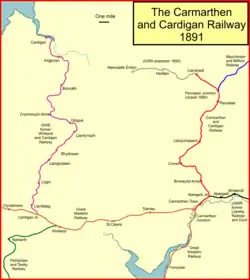 8. ^ a b c d Carmarthen and Cardigan Railway at John Speller's Web Pages http://spellerweb.net/rhindex/UKRH/GreatWestern/Broadgauge/Cardigan.html