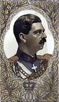 The propaganda and personality cult were tame at first, but they grew in time as Carol II carefully cultivated the image of "Conducător (leader)", "Saviour", "King of the Rebirth", "Voivode of Culture" and "Great Watchman".[1][2]