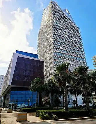 Casablanca Finance City Tower (Arabic: برج القطب المالي للدار البيضاء) also known as the CFC Tower is a 28–story office building in Casablanca, Morocco. Built between 2016 ans 2019, the tower stands at 136 m (446 ft) tall and is the fourth tallest building in Morocco.[2] It is located in the Casablanca Finance City, built at the site of the former Casablanca–Anfa Airport.[2] It was designed by Morphosis Architects.[3]