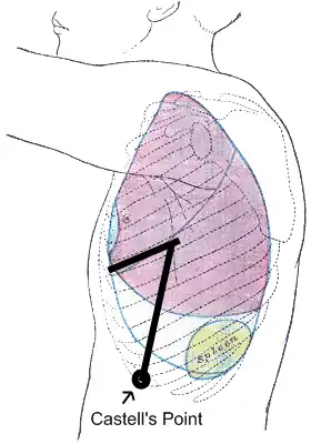 Castell's sign[1] is a medical sign assessed to evaluate splenomegaly and typically part of an abdominal examination. It is an alternative physical examination maneuver to percussion over Traube's space.