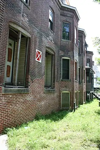 Castle Street Row is a historic rowhouse block at 4–18 Castle Street in Worcester, Massachusetts. Built c. 1873 by Worcester industrialist and developer Eli Thayer, the row of eight units is the largest collection of rowhouse units remaining in the city from a somewhat larger number built around that time. The three-story brick buildings are Second Empire in style, with mansard roofs. Although they were designed as single-family homes, most of them had been subdivided by the late 1880s.[2]