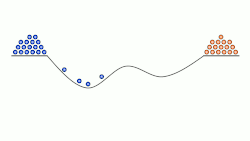 Surface binding energy oscillation also occurs to different extent with the various chemical surface species as defined by the γi-j parameter. For any non-unity γi-j system, the asymmetry in the surface energy profile results in conducting work to bias the reaction to a steady state away from equilibrium.[10] Similar to the controlled directionality of molecular machines, the resulting ratchet (device) energy mechanism selectively moves molecules through a catalytic reaction against a free energy gradient.[11]