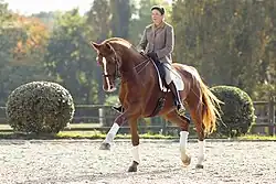 Catherine Henriquet and Hanoverian Gelding Lexus Gold extending the trot