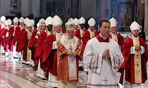 The Catholic Church in the United States is part of the worldwide Catholic Church in communion with the pope. With 23 percent of the United States' population as of 2018, the Catholic Church is the country's second-largest religious grouping after Protestantism, and the country's largest single church if Protestantism is divided into separate denominations.[3] In a 2020 Gallup poll, 25% of Americans said they were Catholic.[4] The United States has the fourth-largest Catholic population in the world, after Brazil, Mexico, and the Philippines.[5]