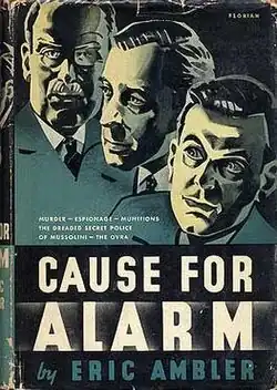 Cause for Alarm is a novel by Eric Ambler first published in 1938. Set in Fascist Italy during that year, the book is one of Ambler's classic spy thrillers.