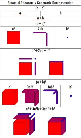 For positive integers, this proof can be geometrized:[2] if one considers the quantity xn as the volume of the n-cube (the hypercube in n dimensions), then the derivative is the change in the volume as the side length is changed – this is xn−1, which can be interpreted as the area of n faces, each of dimension n − 1 (fixing one vertex at the origin, these are the n faces not touching the vertex), corresponding to the cube increasing in size by growing in the direction of these faces – in the 3-dimensional case, adding 3 infinitesimally thin squares, one to each of these faces. Conversely, geometrizing the fundamental theorem of calculus, stacking up these infinitesimal (n − 1) cubes yields a (hyper)-pyramid, and n of these pyramids form the n-cube, which yields the formula. Further, there is an n-fold cyclic symmetry of the n-cube around the diagonal cycling these pyramids (for which a pyramid is a fundamental domain). In the case of the cube (3-cube), this is how the volume of a pyramid was originally rigorously established: the cube has 3-fold symmetry, with fundamental domain a pyramids, dividing the cube into 3 pyramids, corresponding to the fact that the volume of a pyramid is one third of the base times the height. This illustrates geometrically the equivalence between the quadrature of the parabola and the volume of a pyramid, which were computed classically by different means.