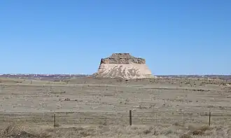 One of the Pawnee Buttes with the wind farm in the distance. | |