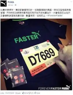 To publicise its involvement in the 2015 Hong Kong marathon, Puma posted an image of a facsimile runner's identification tag bearing the number "D7689" onto its Facebook page. One supporter of the Loving Hong Kong movement objected to the number, writing to the global CEO of the manufacturer saying that it was disrespectful to chief executive CY Leung and threatened to initiate a mass boycott of the company's sportswear.[71][72] The complainant explained that "689 is the code of the current CE of HKSAR well understood by HK people. D7 has the similar phonics in Cantonese as the 'F***' word".[72] The company declared its political neutrality, and deleted the post.[71] Lampooning the complaint, members of the public scoured the city and found many examples of innocent occurrences of the irreverent number.[73] MTR staff were warned after one such example found, of a carriage bearing the "D689" marking, posted to their unofficial MTR Service Update page on Facebook.[73][74]