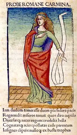6. ^ Ironically, in the Medieval period—because Faltonia Betitia Proba was often confused with her granddaughter Anicia Faltonia Proba and because Jerome praised Anicia Proba in a letter to DemetriasDe laudibus Christi was sometimes called "The cento of the illustrious poet Proba Faltonia, approved of by divine Jerome".[67]